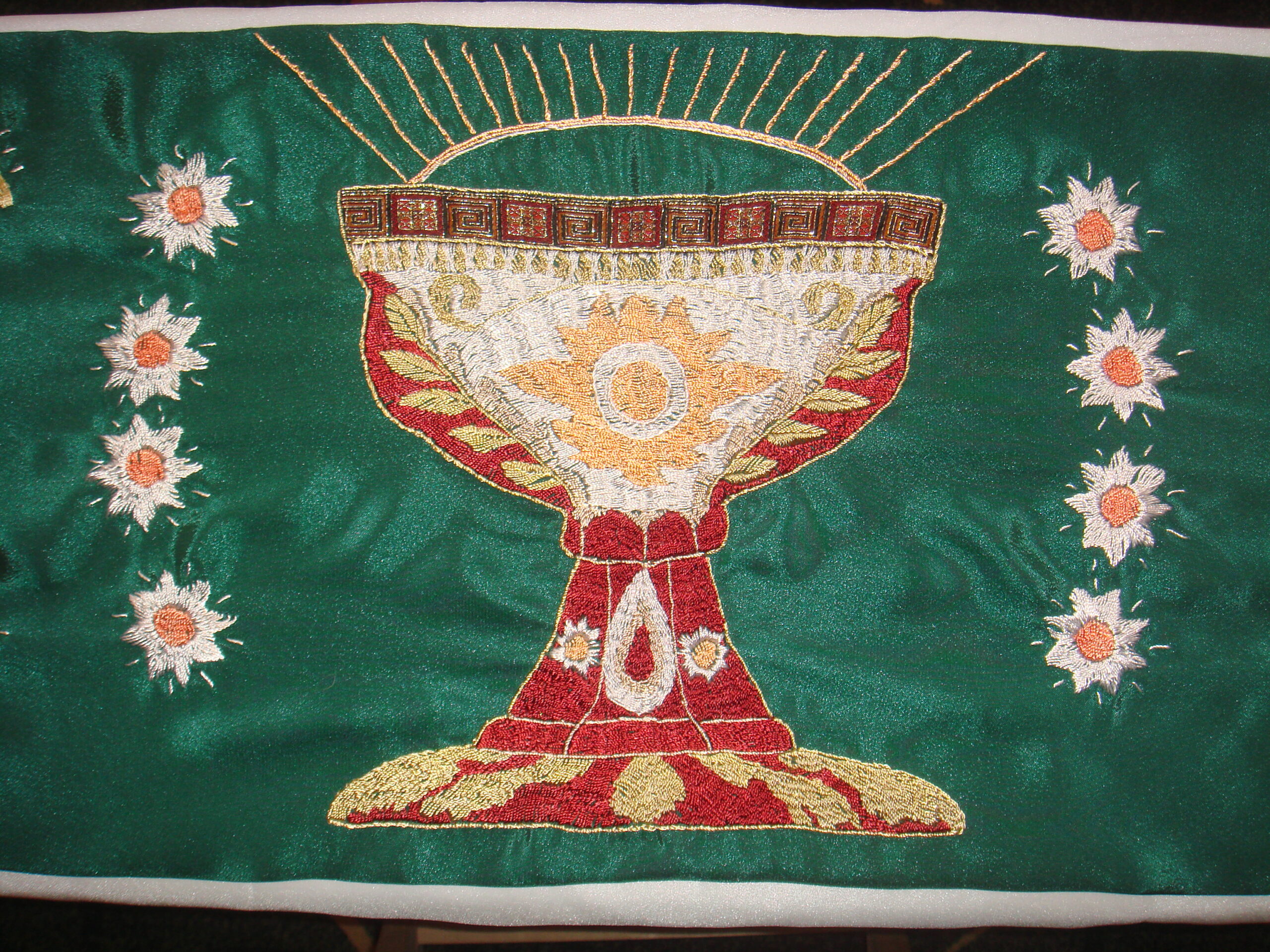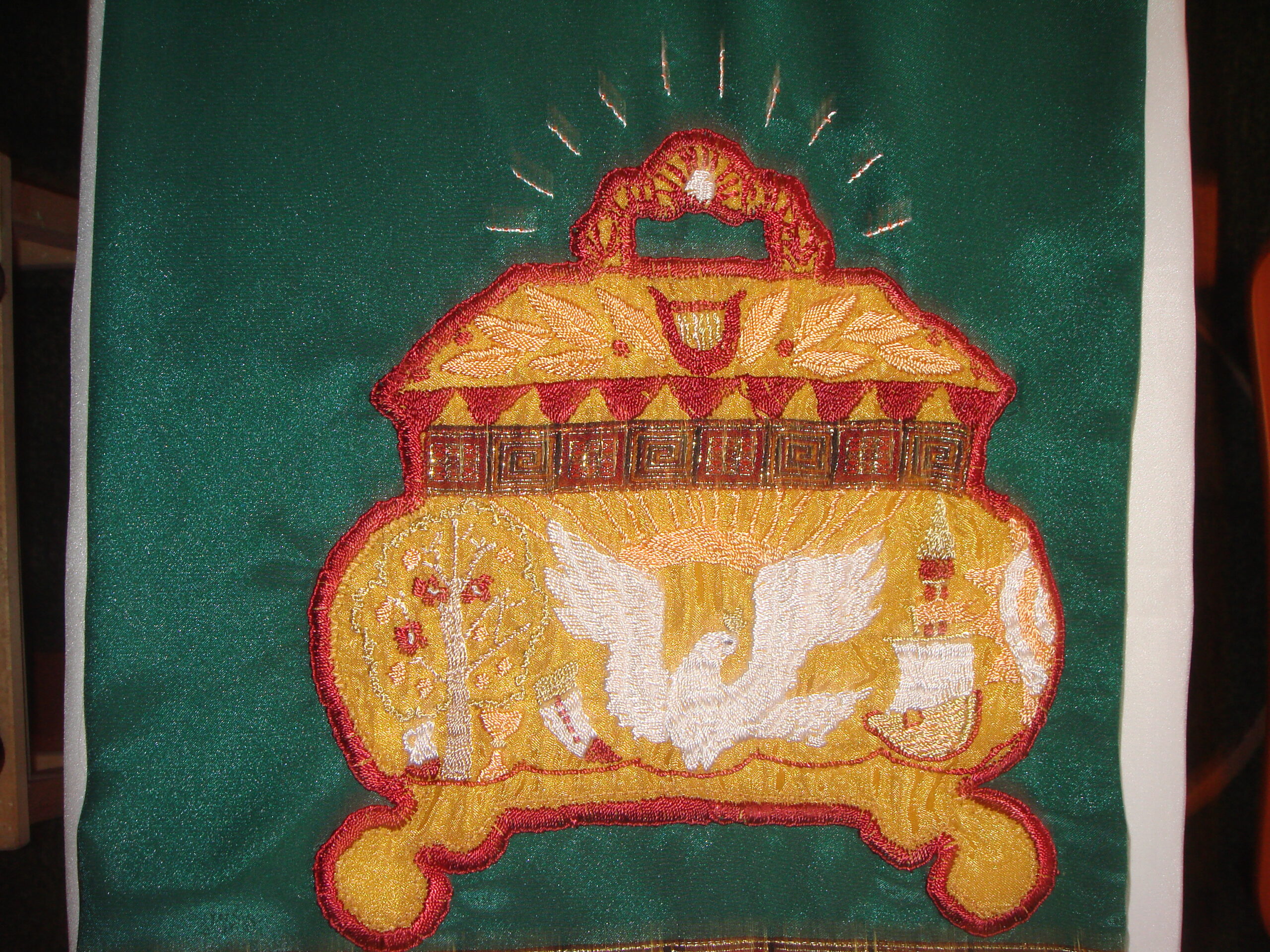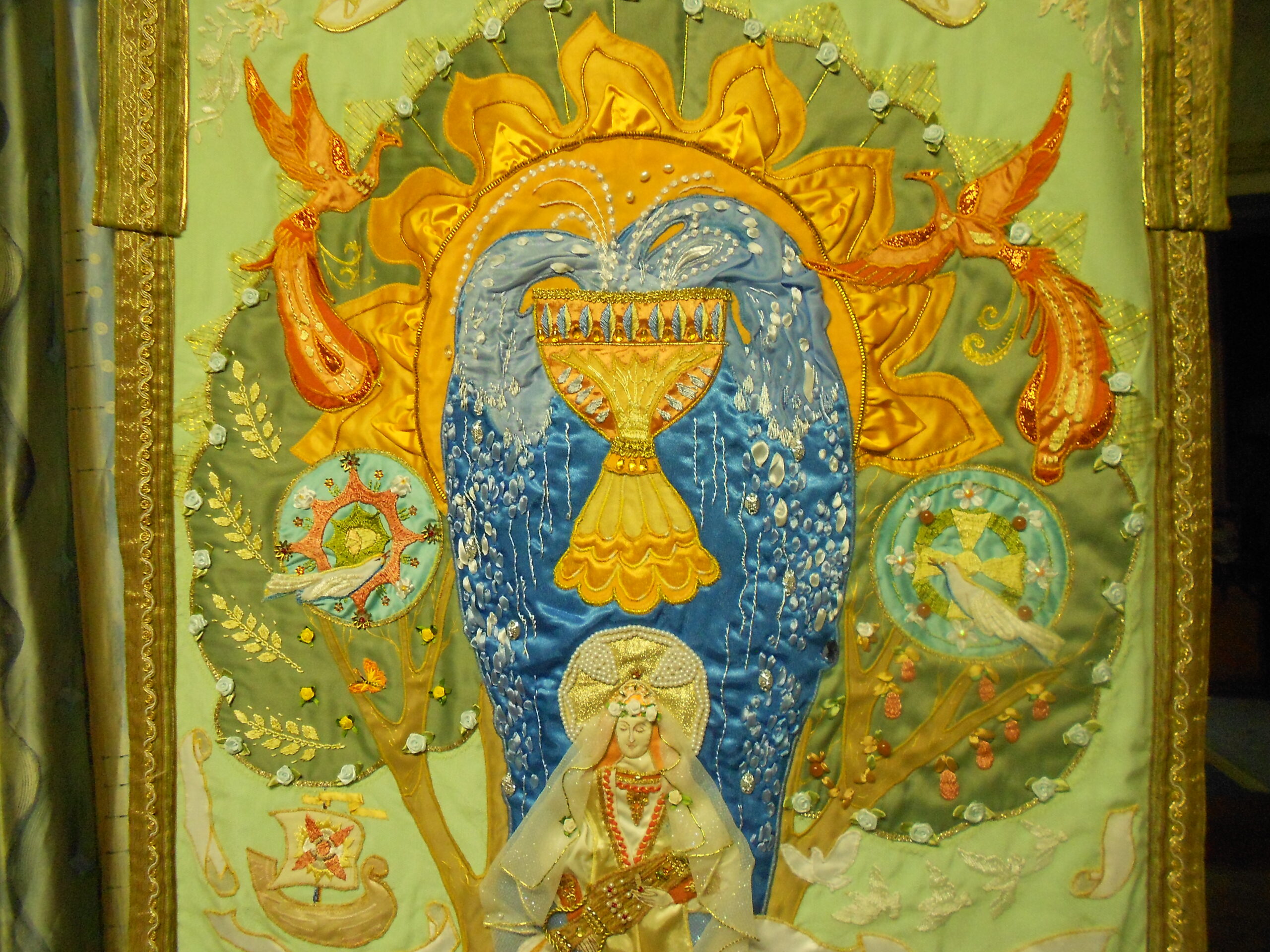 В 1916 году наша покровительница императрица Александра вместе со своими дочерями вышила золотыми нитями и драгоценными камнями плащаницу, посвященную Успению Царицы Небесной.