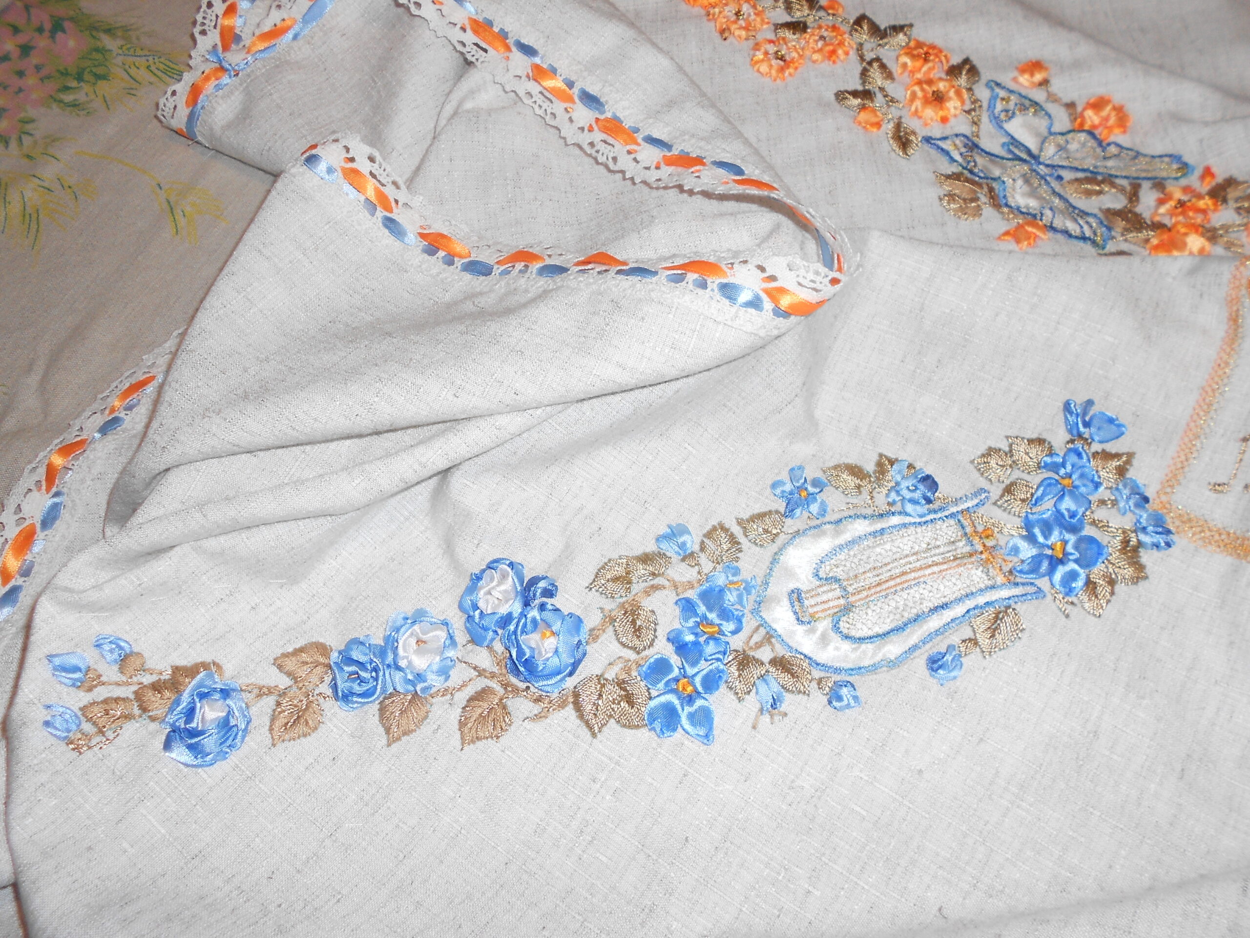 Почти всегда основа наших композиций состоит из тканей белого, голубого и оранжевого цвета.